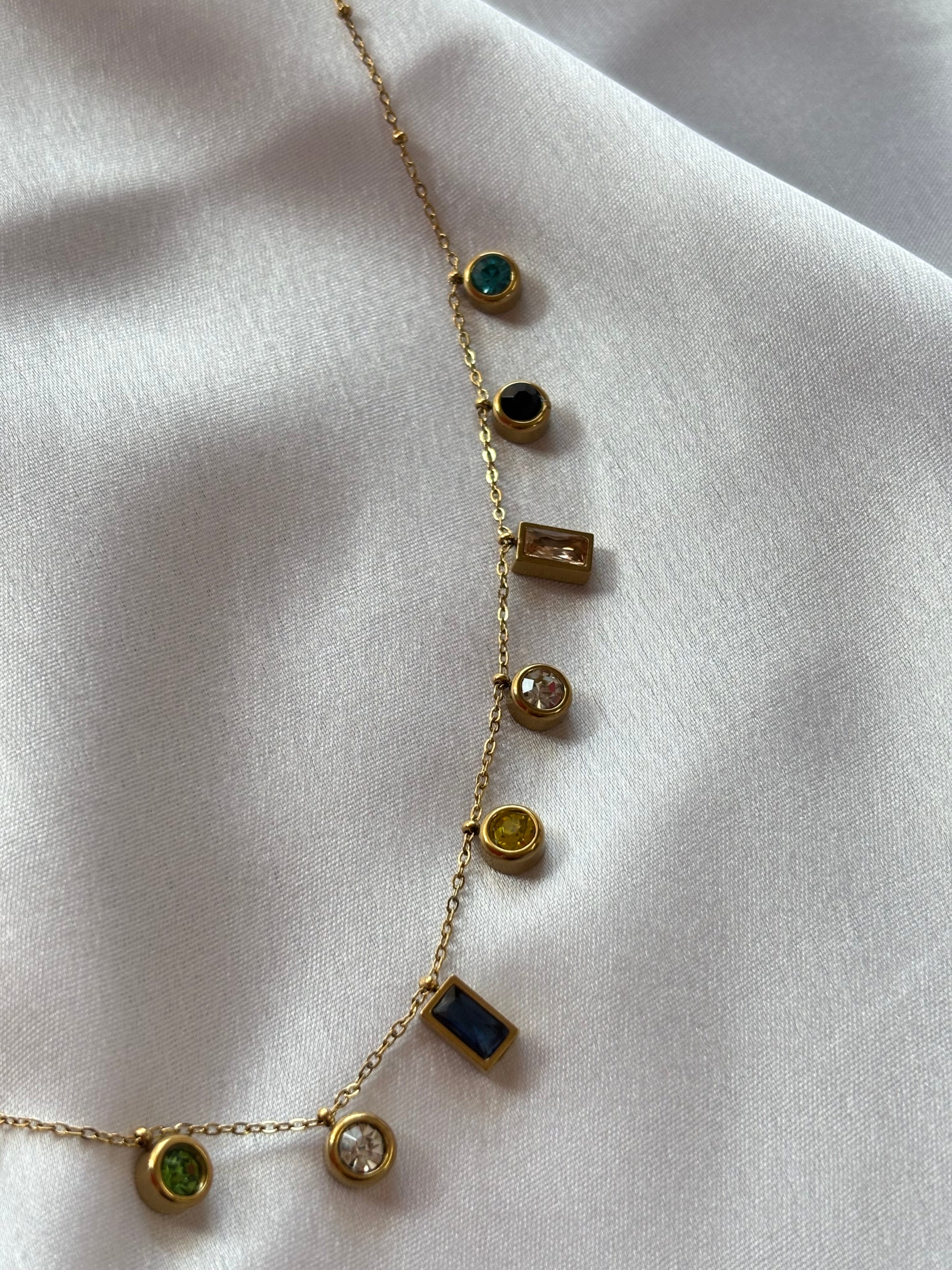 Add a touch of color with our gemstone necklace. Crafted from durable, water-resistant stainless steel that's anti-tarnish and hypoallergenic. Perfect for everyday wear!