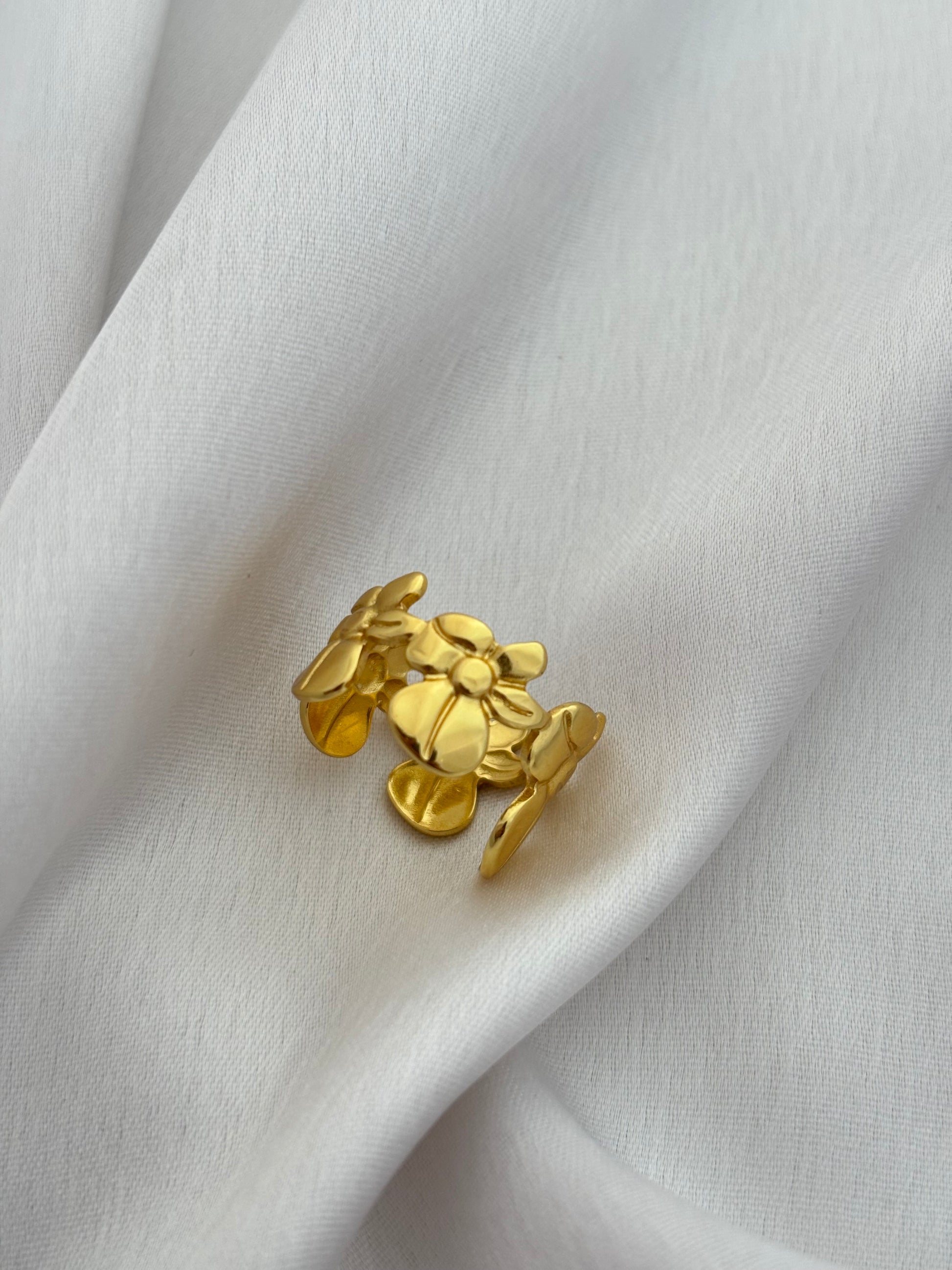 Elevate your summer style with our organic triple-flower ring. Crafted from stainless steel, this adjustable, water-resistant ring is built for beach days and tropical nights. Enjoy a bold, tarnish-free look that fits perfectly every time.