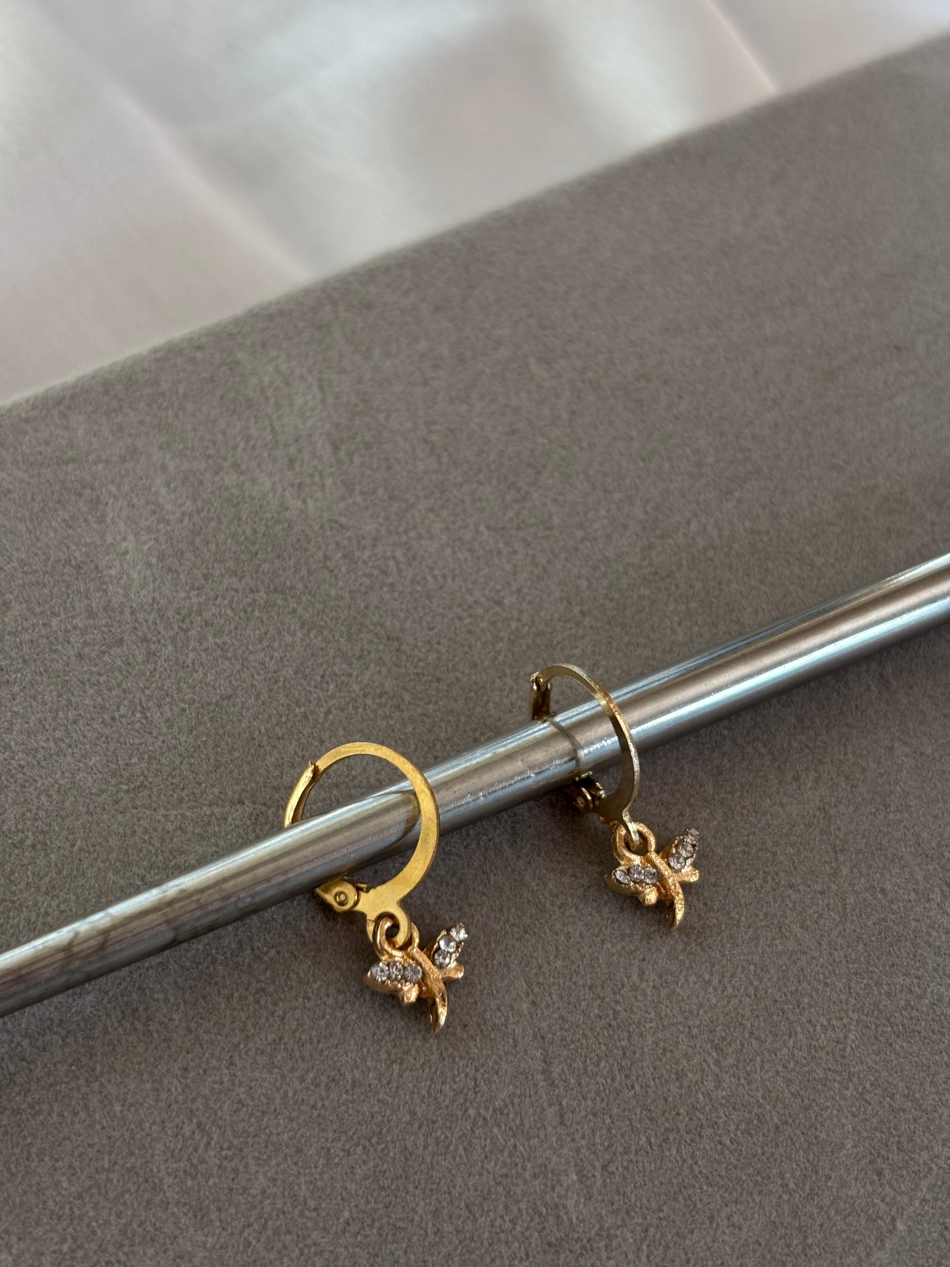 Adorned with delicate butterfly charms and sparkling stones, these hoops bring a touch of elegance and charm to every look. A perfect blend of subtle sparkle and timeless beauty.