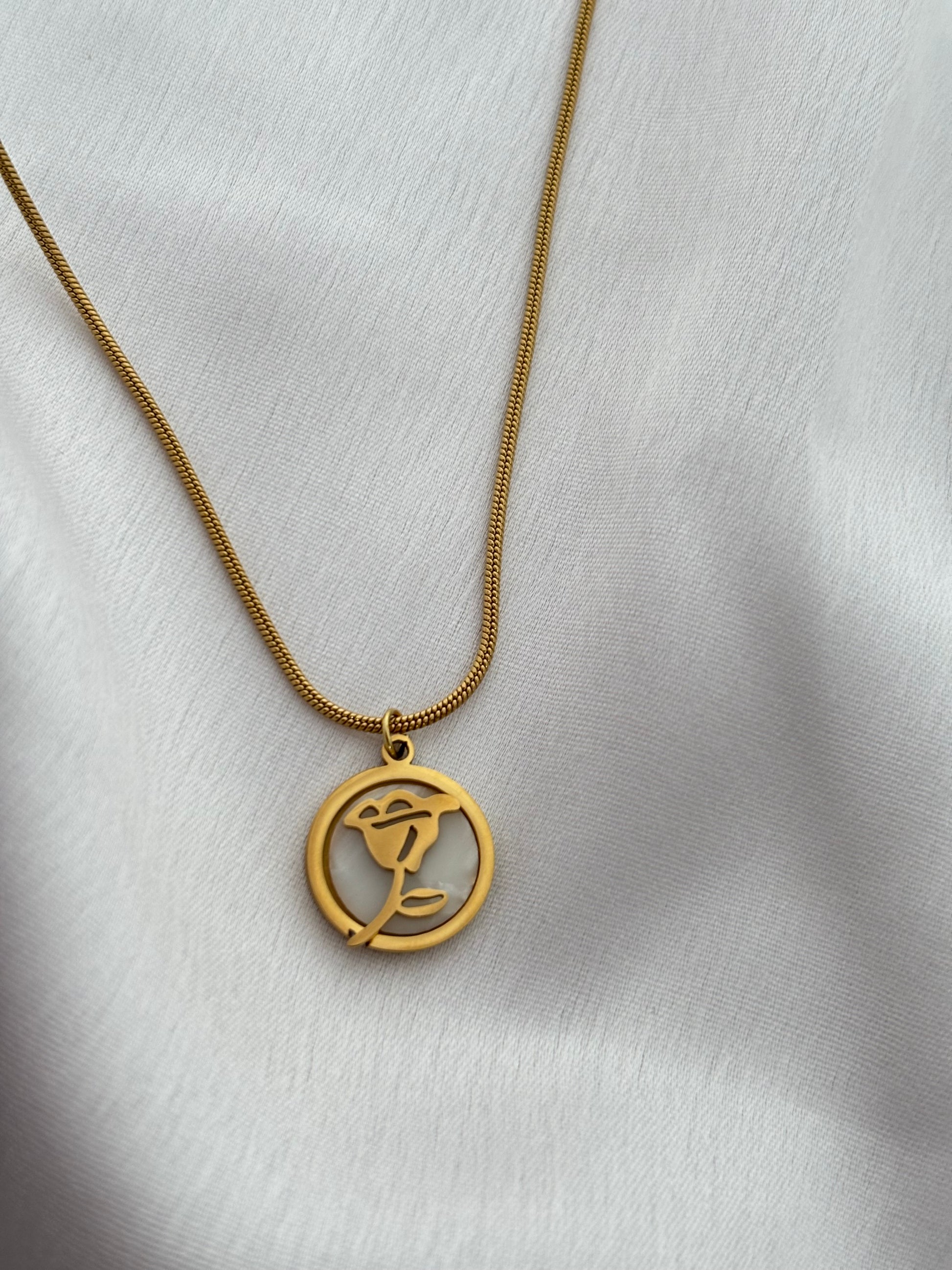 Rose Whispers Pendant captures understated sophistication through its delicate floral design. Crafted from hypoallergenic stainless steel, this piece resists tarnishing and water damage, making it ideal for daily wear. The pendant serves as a gentle reminder that true elegance lies in simplicity and grace. Whether layered with other pieces or worn solo, it brings a touch of botanical beauty to any ensemble. A versatile accessory that transcends occasion and season.