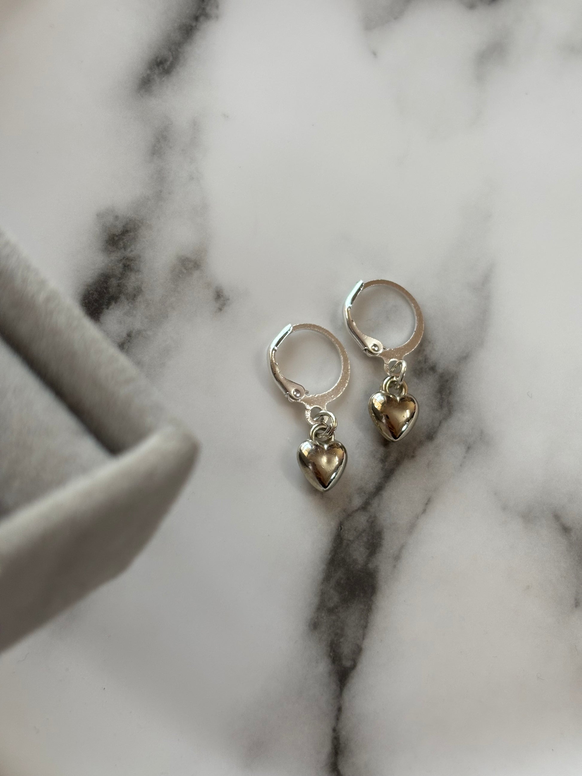 Silver Heart Charm Hoop Earrings – Minimal & Elegant Jewelry